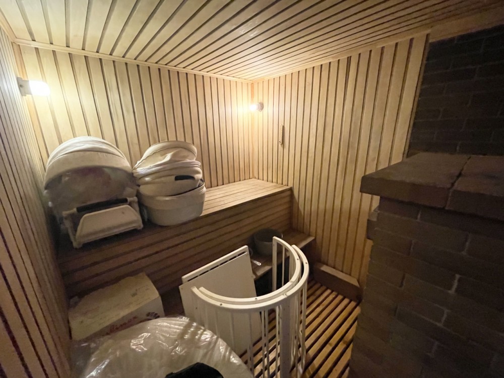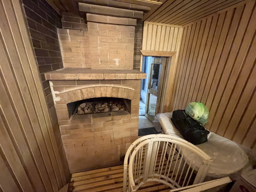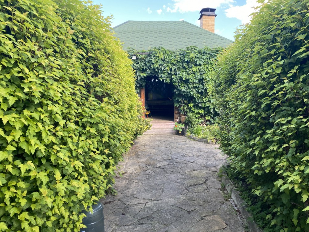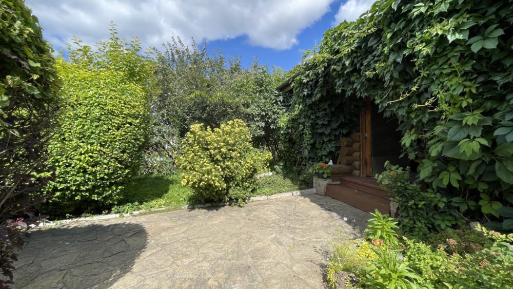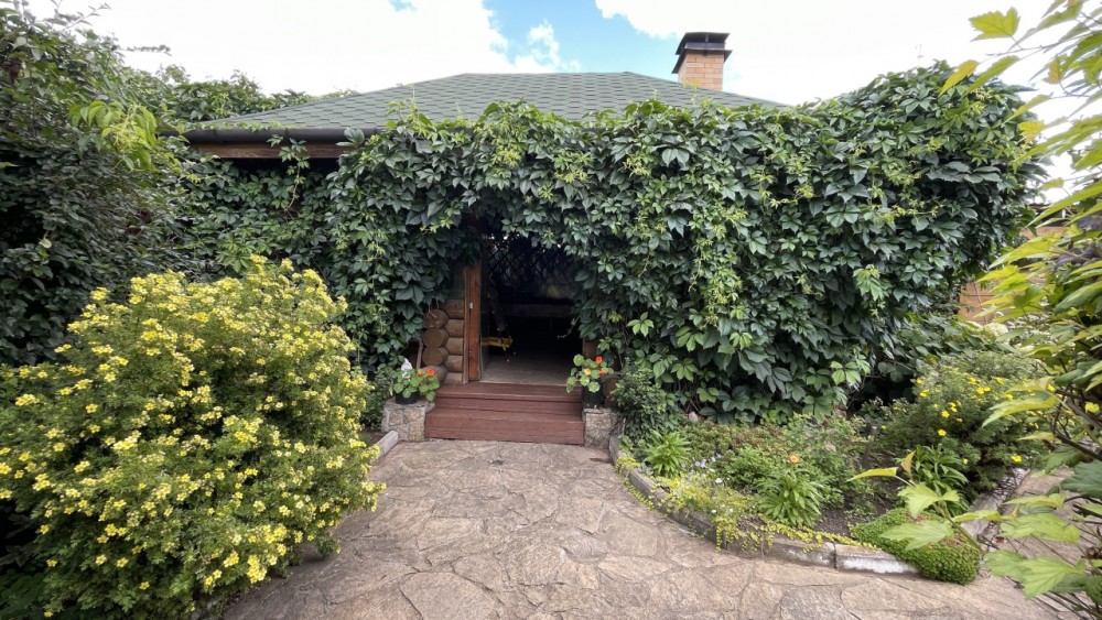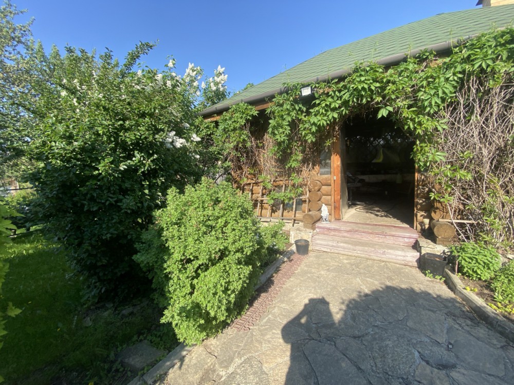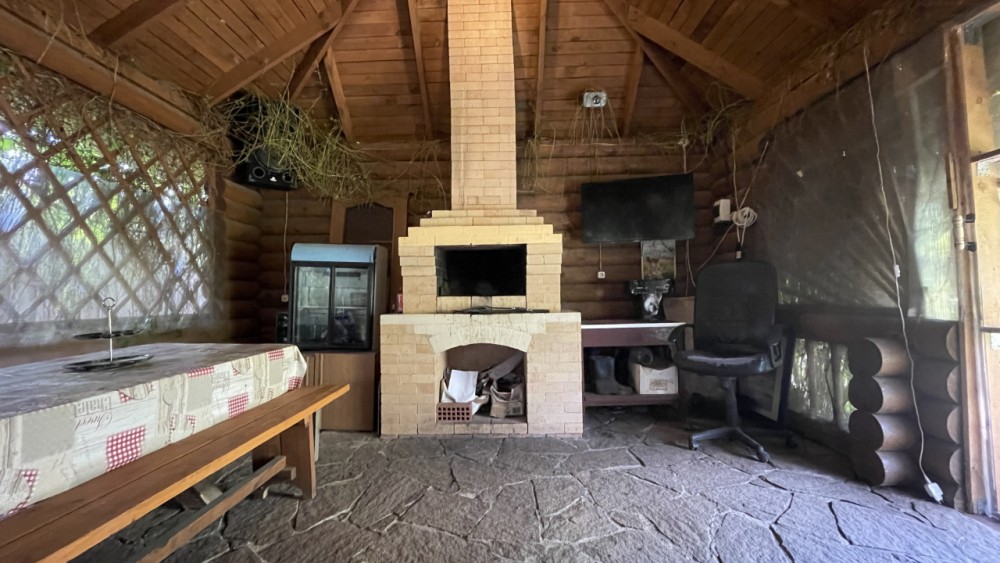 Беседка 30 кв. м (из бревна)- ленточный фундамент, на полу залита стяжка с декоративным камнем, установлена печь для барбекю, большой деревянный стол ручной работы, скамейки, диван, несколько шкафчиков для хранения. Рядом в беседкой - мастерская, дровенник, два помещения для хранения садового инвентаря.