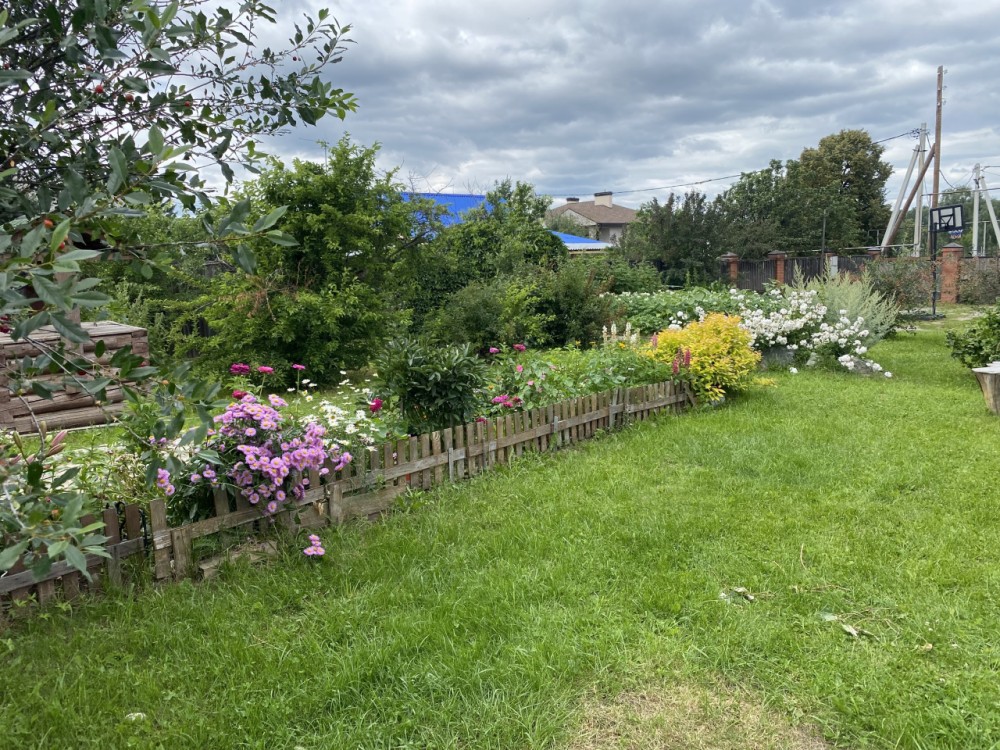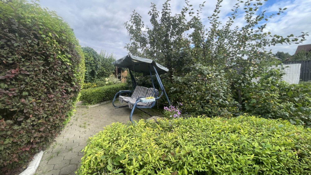 Так же на участке есть две теплицы (6 и 8 метров), две зоны для отдыха с качелями, ландшафный дизайн(много красивых кустов и растений)открытая зона барбекю, закрытая конструкция для размещения бассейна (летний период), тент под хранение мотоцикла, летний туалет. Около 15 грядок с различными насаждениями, 6 яблонь (одна из них столетняя), 2 голубые ели, 3 сливы, 2 груши, ирга, 3 зоны с малиной, 2 зоны под посадку картофеля, 5-6 вишен, 5 кустов со смородиной, крыжовник, 2 куста с жимолостью, две сирени, рябина, черноплодная рядина, черевишня, кедр, цветник 20 метров, два цветника рядом с беседкой, множество декоративных растений. Отсыпана стоянка. За воротами и перед ними. На участке подготовлено место под постройку большого дома-коттеджа. Планировали возводить дом 10 на 12.