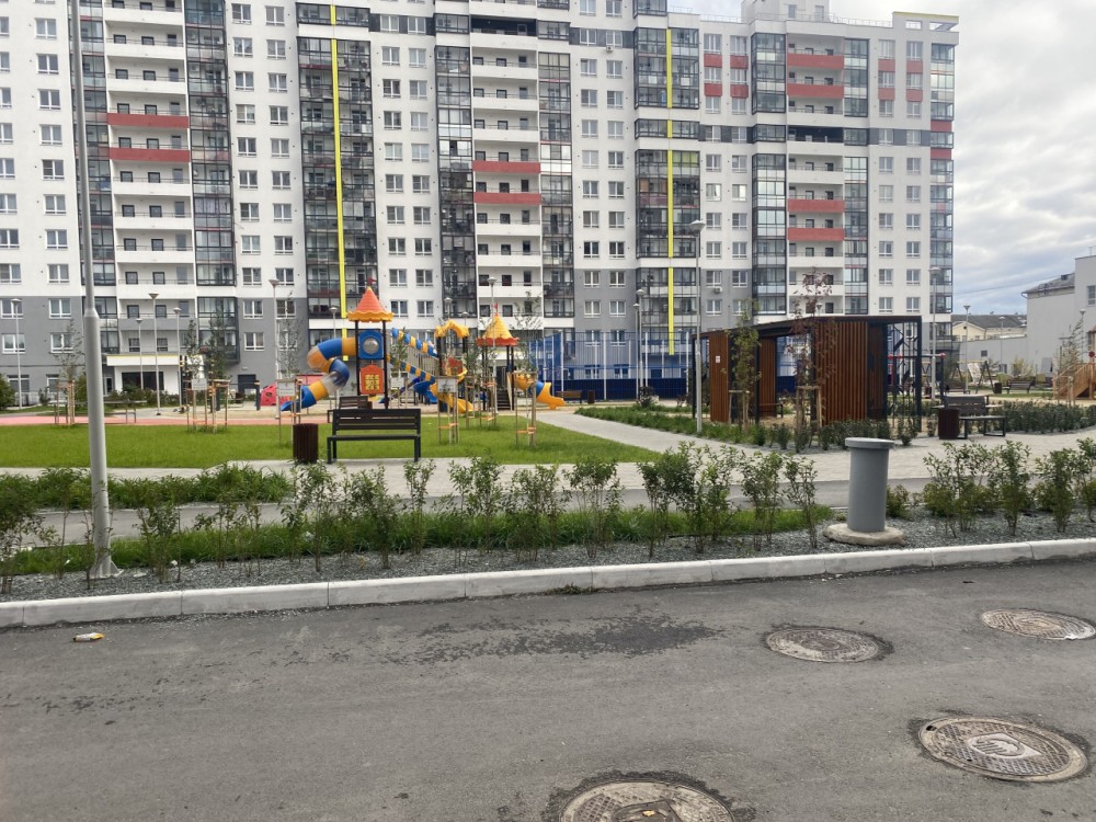 Для детей несколько площадок, спортивная зона с баскетбольной площадкой, территория озелена красивыми растениями, все поддерживается в чистоте. Машин во дворе нет.